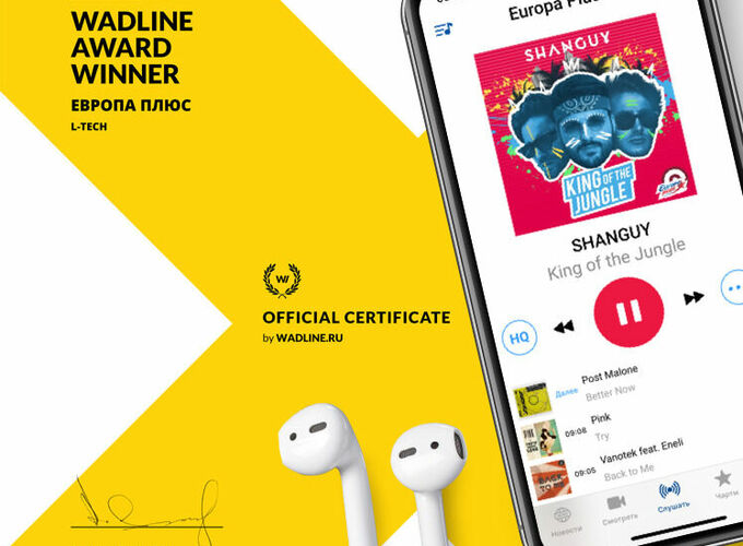 Мобильное приложение "Европа Плюс" стало победителем в номинации WADLINE SPRING AWARDS 2020