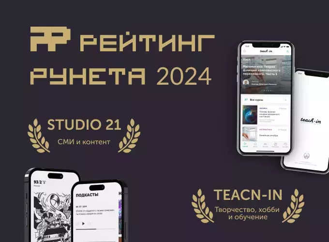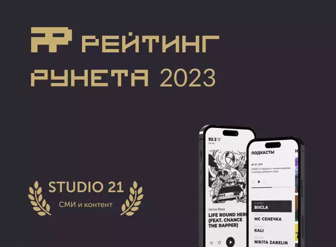 Кейс STUDIO 21 вошел в списки лучших приложений Премии Рейтинг Рунета 2023 в категории «СМИ и контент».