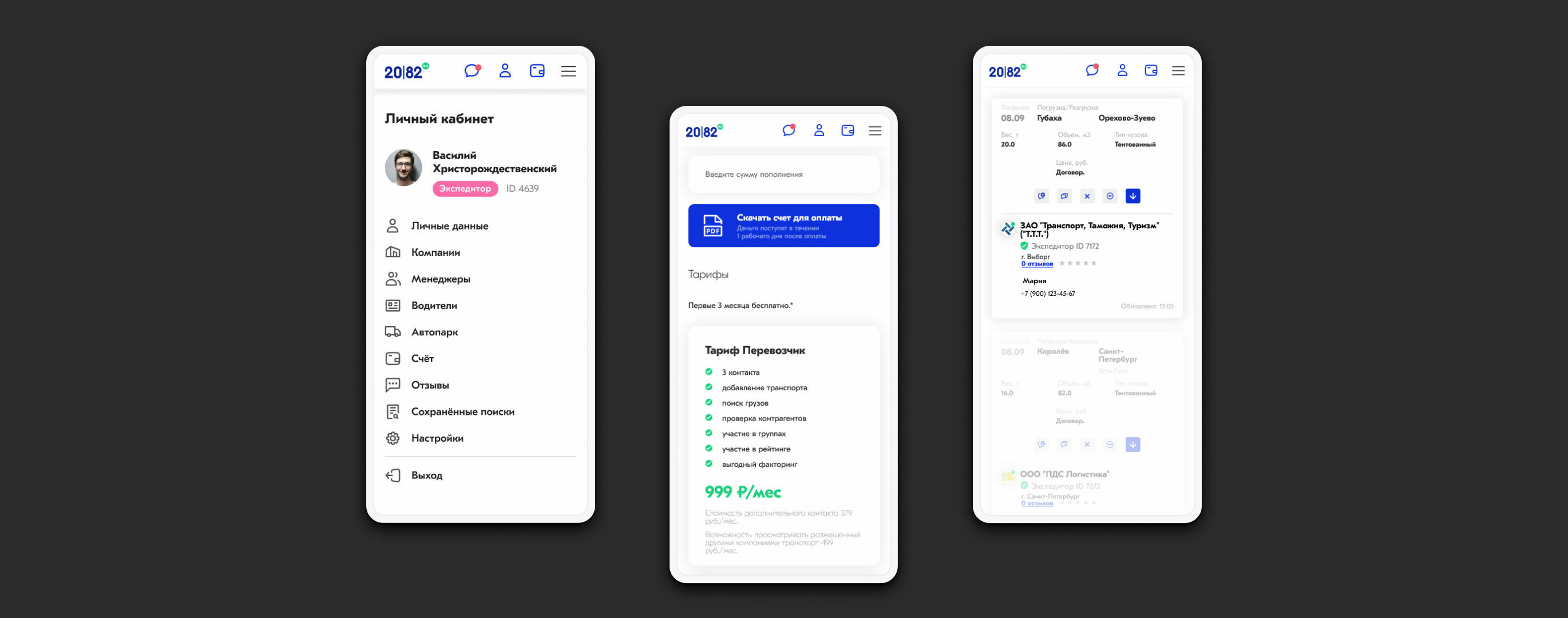 2082.ru — это портал грузоперевозок, где заказчики размещают заказы на перевозки, а перевозчики объявления о свободном транспорте.