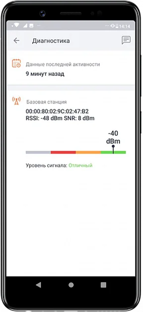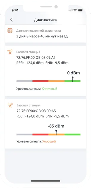 Как только счетчик получает питание, он автоматически связывается с ближайшей базовой станцией. Приложение отображает список доступных базовых станций, показывая время последней связи и уровень сигнала для каждой из них.