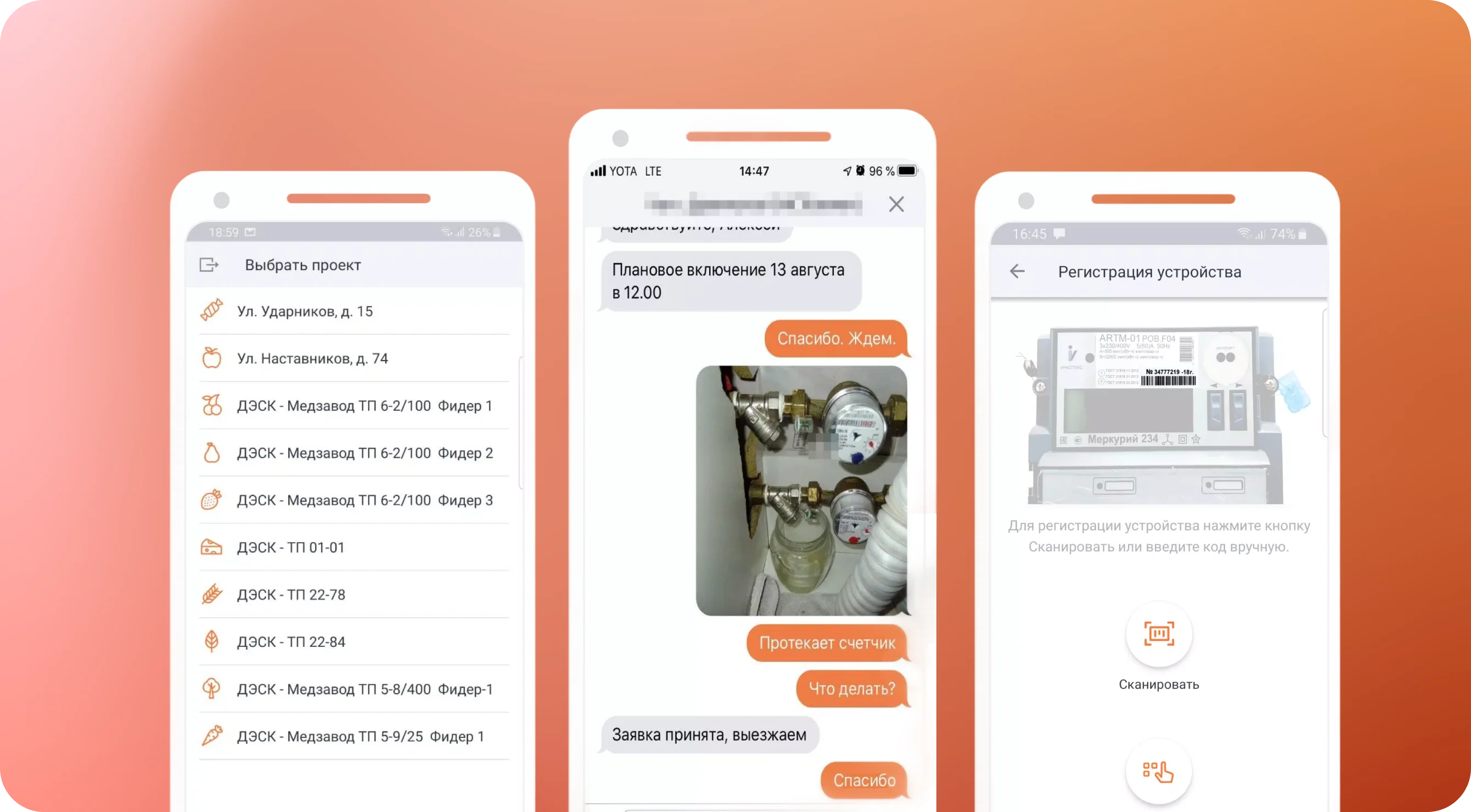После физической установки оборудования, пользователь активирует счетчик в мобильном приложении «КОМЕТА IoT», используя QR-код или серийный номер, которые считываются камерой устройства. Либо вводятся вручную, после чего на экране отобразятся данные с прибора учета.