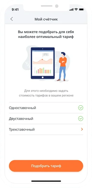 Приложение помогает получать оперативный доступ к показаниям и настройкам каждого прибора учета в сети. В разделе «Мой счетчик» можно устанавливать наиболее удобный тариф.