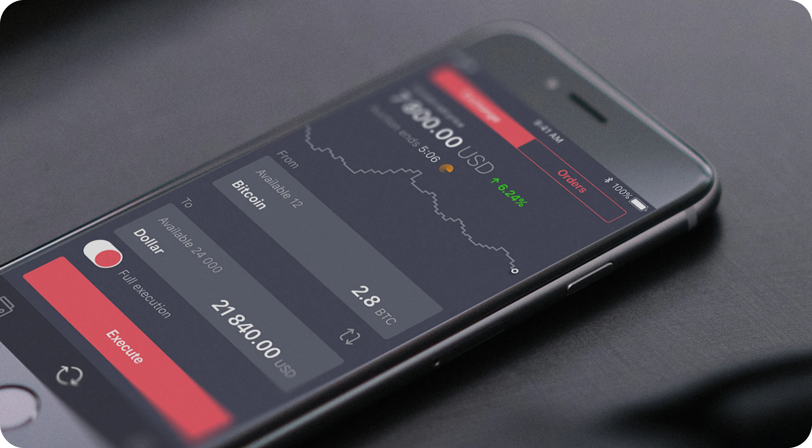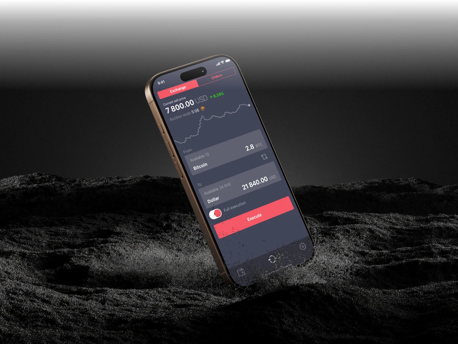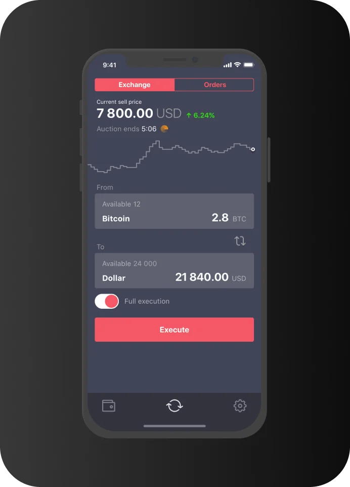 Мобильное приложение позволяет пользователям торговать криптовалютой, предлагая функционал для покупки и продажи по текущей рыночной цене или с использованием лимитных ордеров.