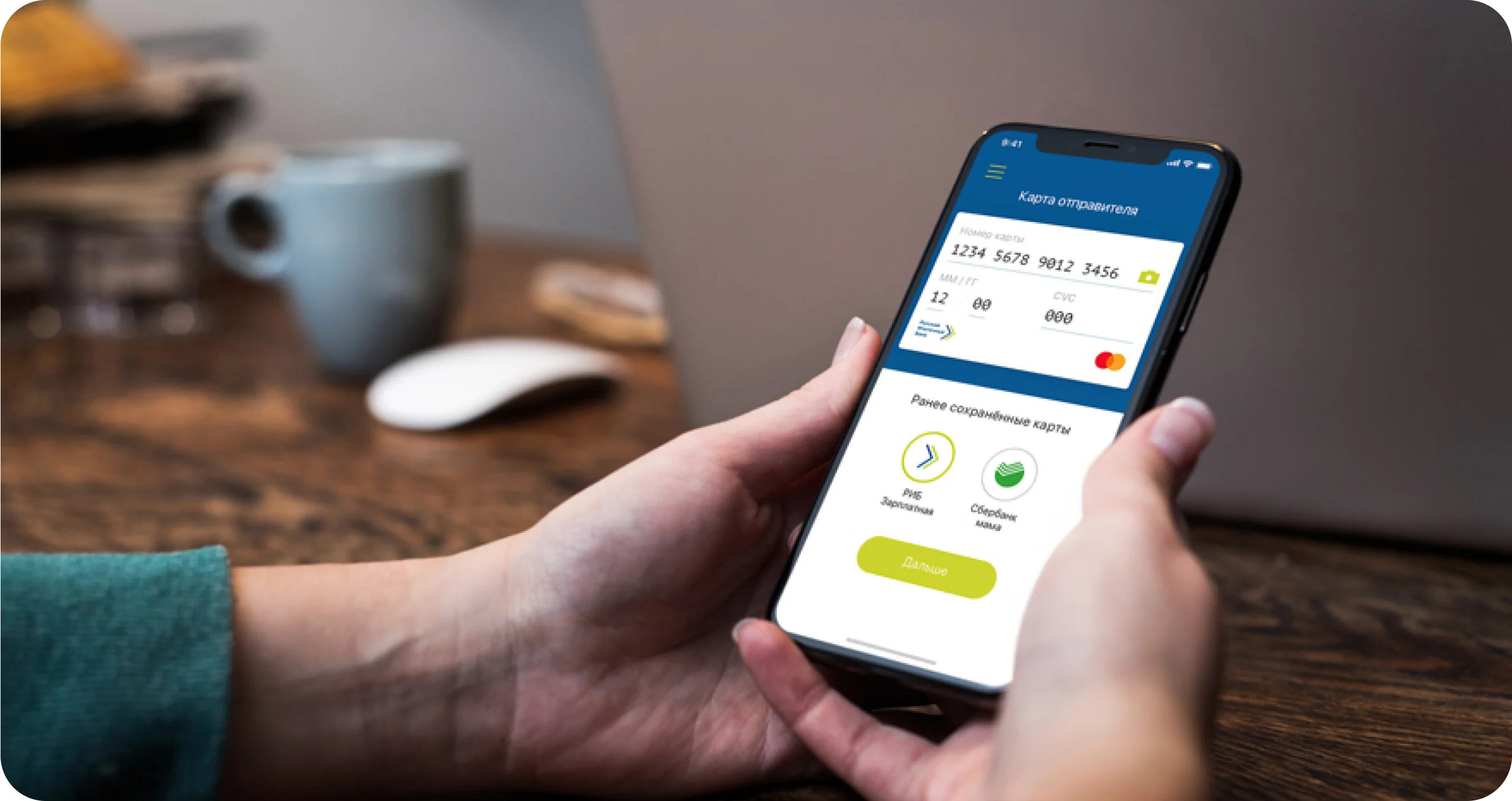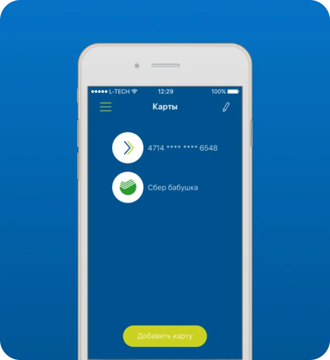 В приложении можно сохранять банковские карты и в дальнейшем совершать переводы за несколько кликов. Каждой карте можно присвоить свое уникальное имя, а не просто номер.